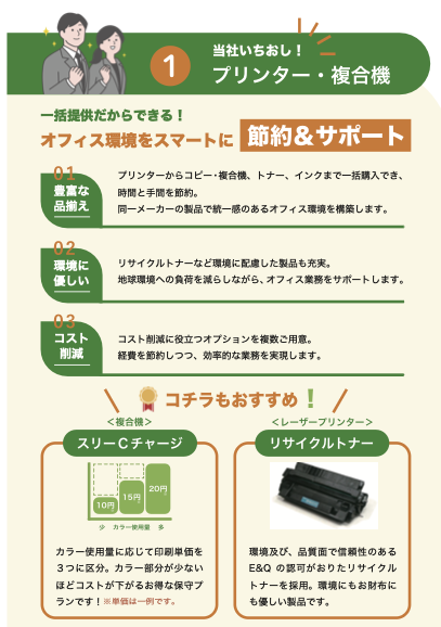環境性と経済性に優れた幅広いラインアップの複合機‧プリンターをはじめ、さまざまな製品やサービスを組み合わせてお客様に最適なドキュメントソリューションを提供します。